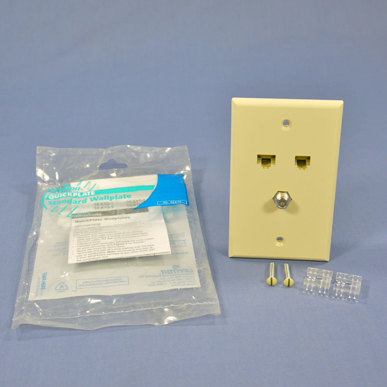 - Leviton Ivory Phone Data Coax F-Connector 3-Port Nylon Wallplate Cat5e 5EA10-S3I