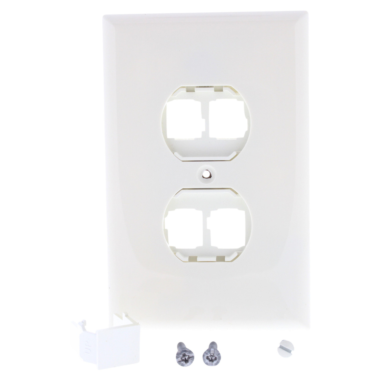Leviton 41087-QWP white 4-port Quickport mounting platform (also known as a Quad 106 and sold under Leviton part numbers 41087-4E. 41087-4EP, 40898-EBR, and 40898-E). Please note that we include a matching wallplate - this is normally sold separately from other vendors. This flush mounted wallplate accepts all QuickPort snap-in modules used for audio, video, and telecommunications. It is designed to match the look of conventional duplex receptacles for a consistent appearance throughout the installation.