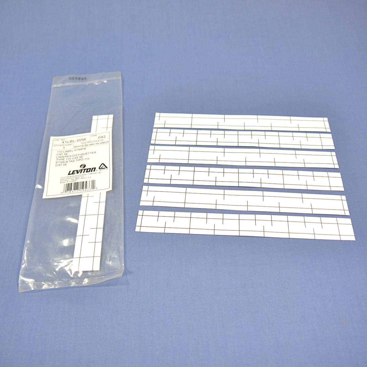12 Leviton 41LBL-W white labels for 110 type telephone wiring bases. These Cat 5e label strips are lined for 2-, 3-, 4-, or 5-pair spacing. Labelled wiring not only helps future service personell but also provides customers with visual confirmation of a professionally executed installation. Identify all your 110 ports quickly and easily with these label when used with Leviton 41100 series label holders (sold separately).
