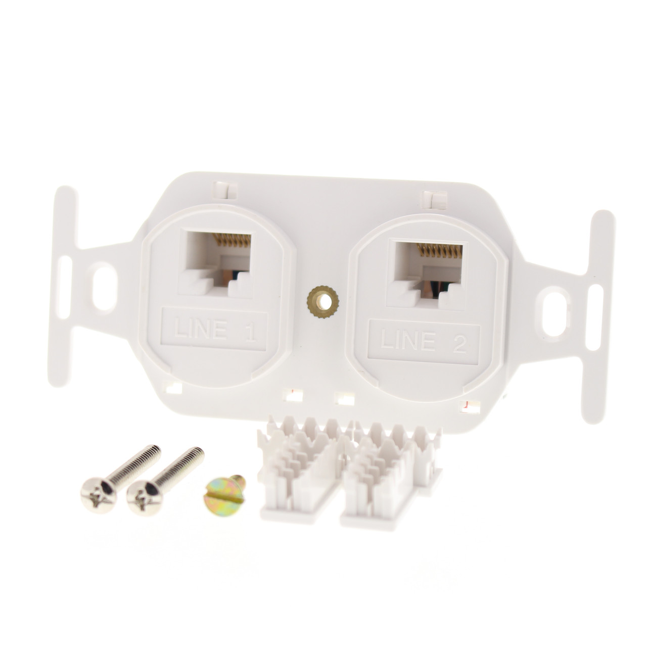 - Accommodates two voice/data terminals in the same jack location, using standard duplex receptacle wallplates