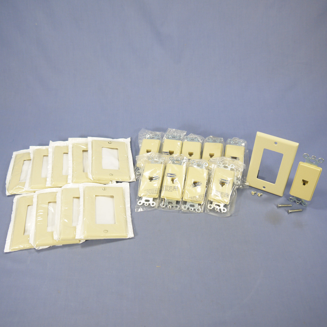 10 Leviton Ivory Decora Modular Telephone Jacks w/ Wallplate 6P6C Type 625F 40638-I