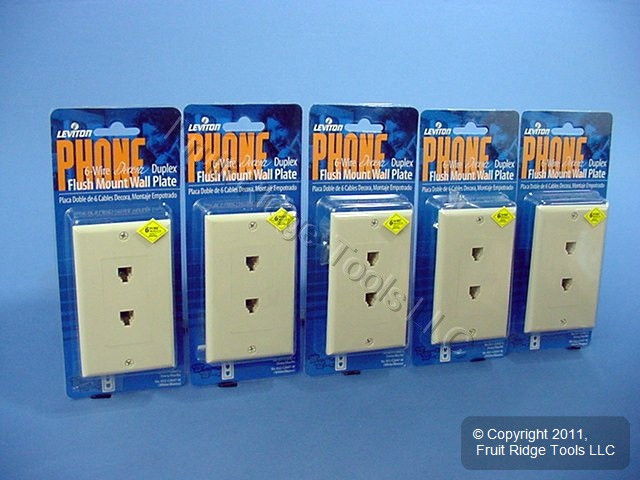 - 5 Leviton Decora Ivory 6-Wire DUPLEX Phone Jack Wallplates C2647-I