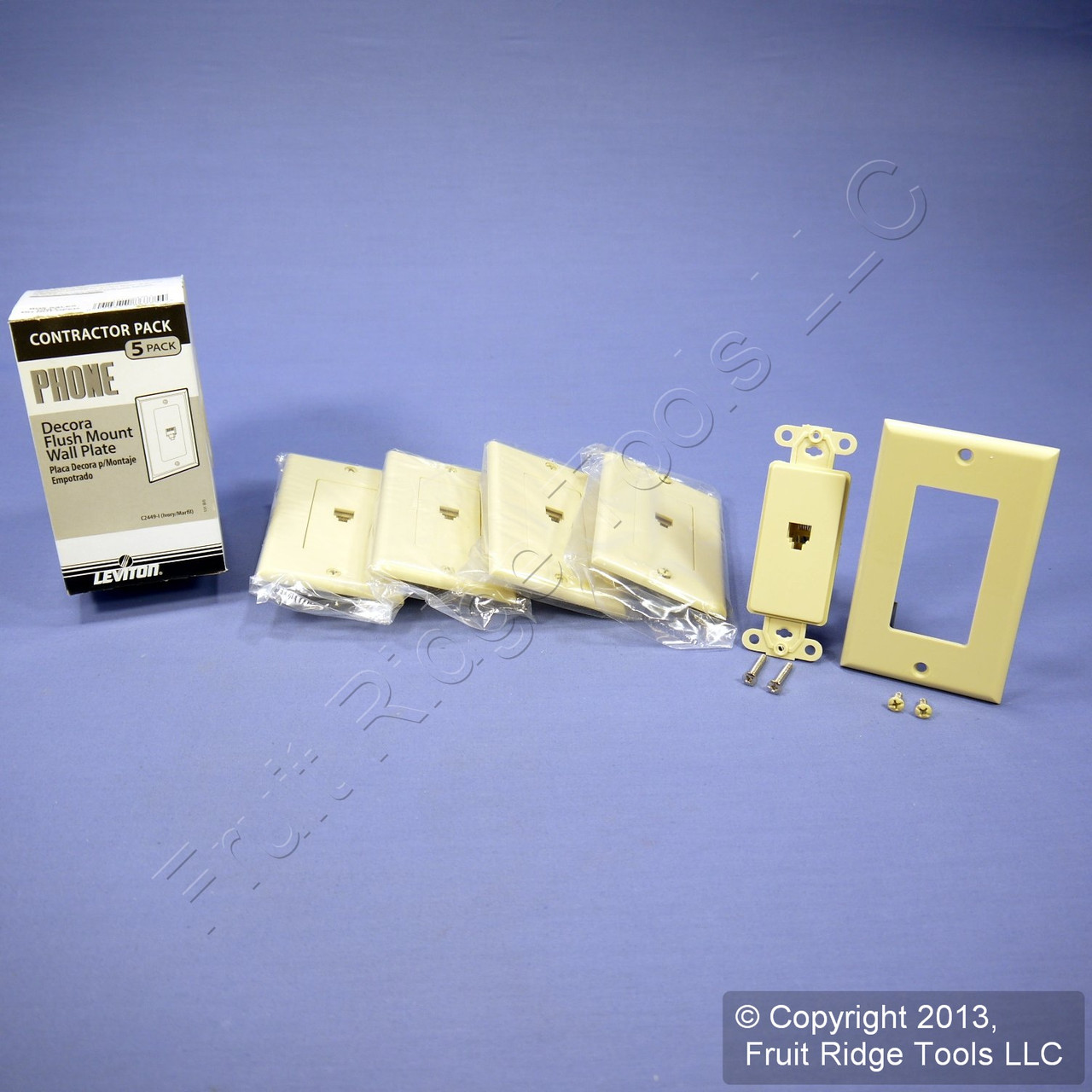 5 Leviton C2449-I ivory Decora flush mount phone jack wallplates. Features include: