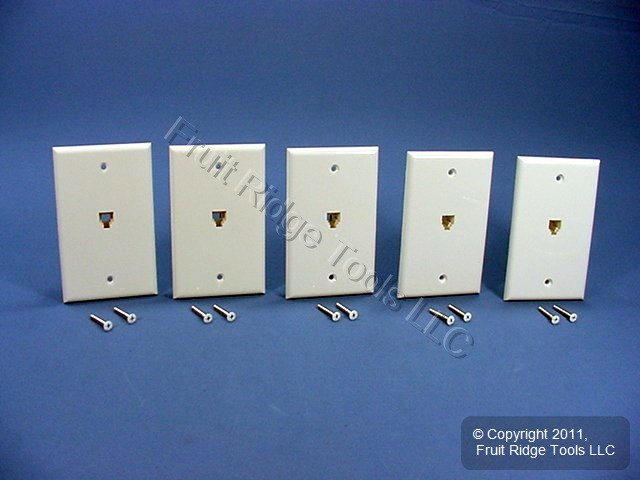 - 5 Leviton White Phone Jack Wallplates 6-Wire Telephone C2675-W