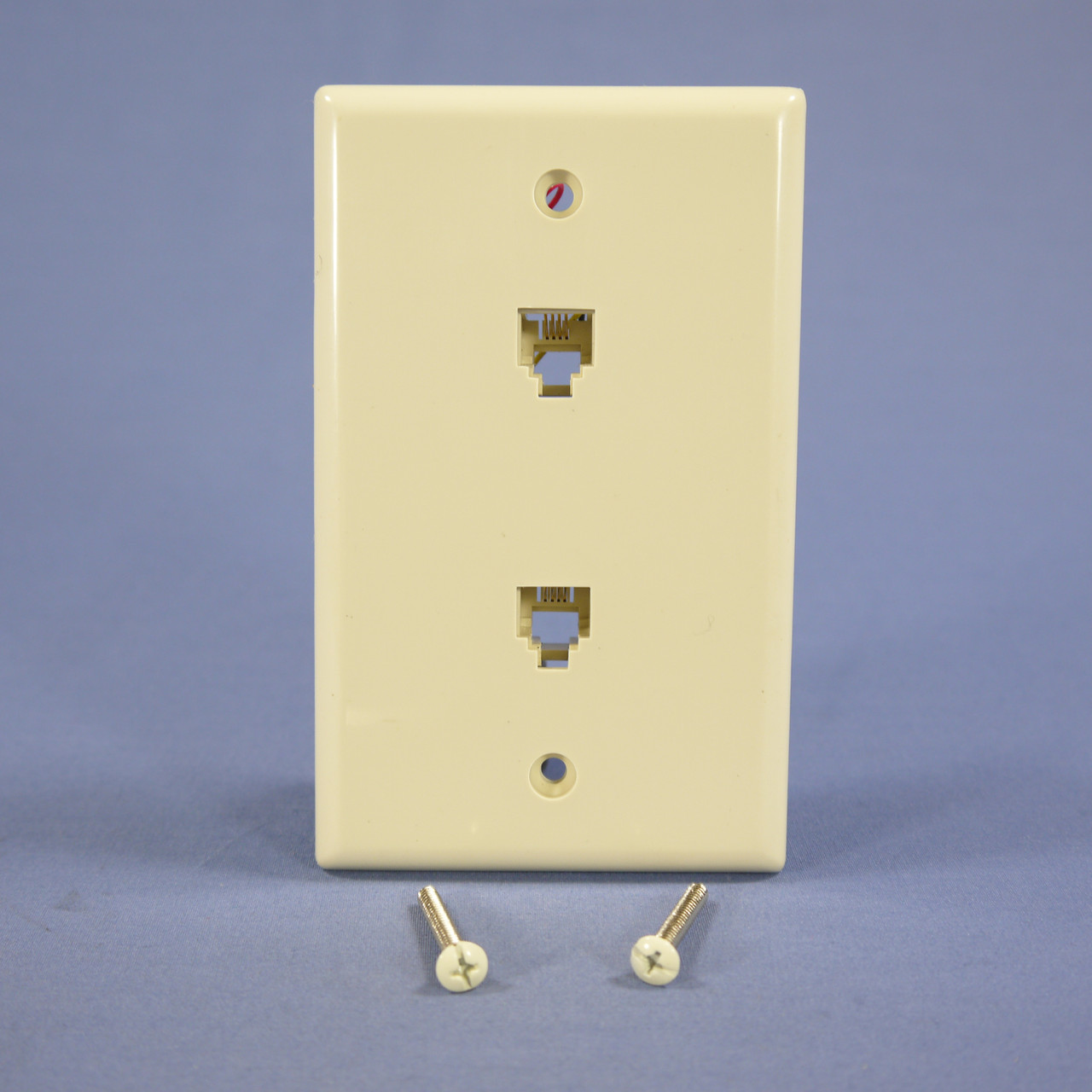 - Cooper Light Almond Flush Mount 4-Conductor Two Telephone Jack Wallplate 3546-4LA