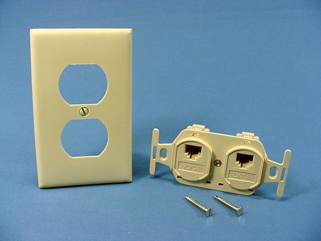 - Leviton Ivory Duplex 8-Wire Phone Jack VOICE DATA Wallplate 110-Type 41361-IDI