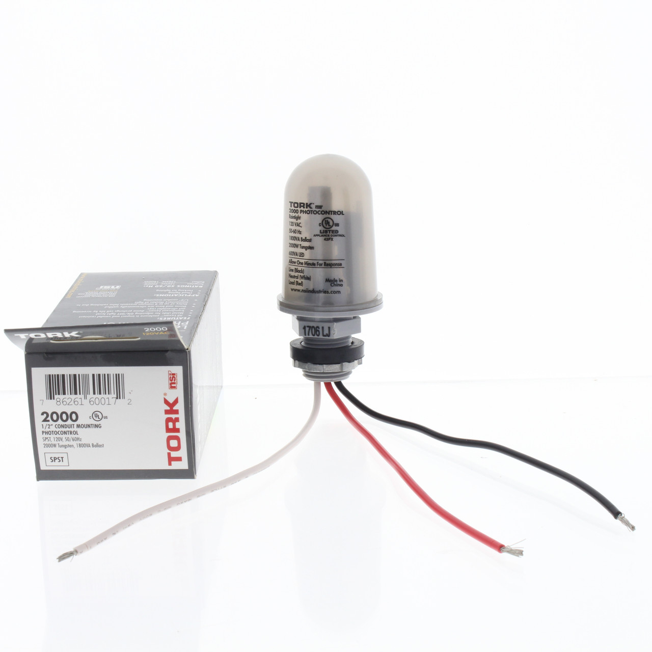 - Tork 2000 1/2" Conduit Mounting Photocontrol SPST 120V 50/60Hz 2000W Tungsten