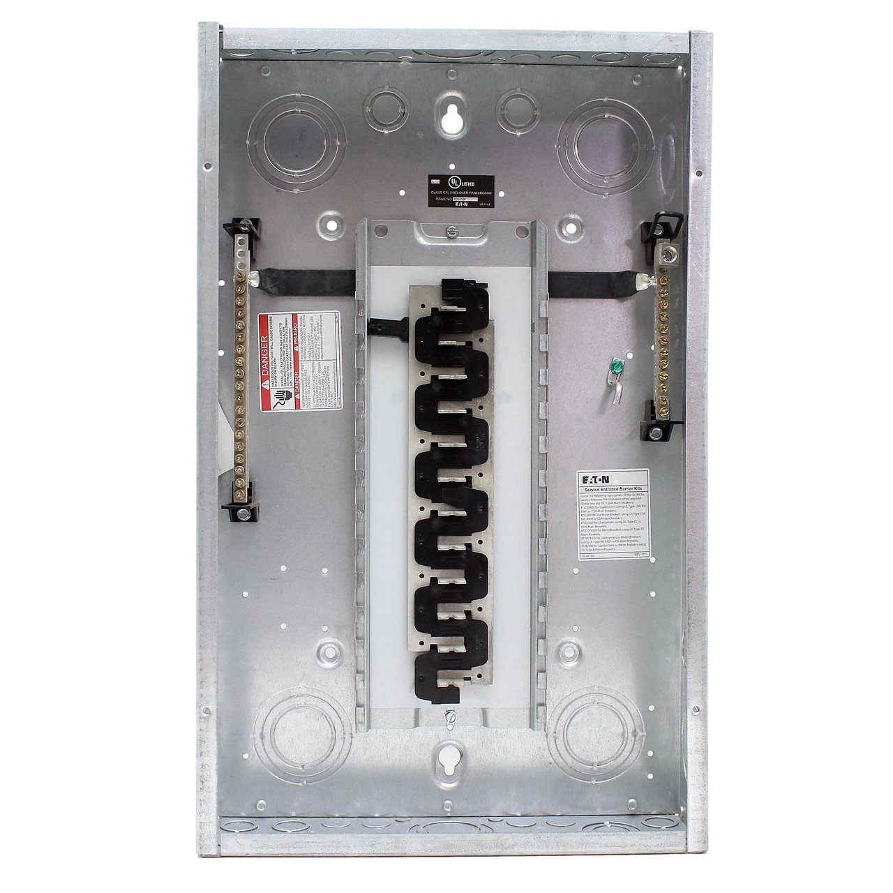 Eaton BR2040B100 Cutler-Hammer series 20-space indoor panel. This listing does not include main breaker, cover or screws; also has limescale stains Features include:- Single phase, 3-wire, 120/240V