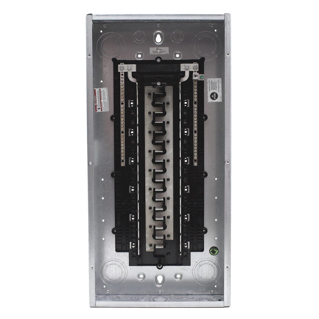 Eaton BRP30H100V25 Cutler-Hammer series 30-space indoor panel with high kAIC rating. Please note this panel does not come with the main breaker, cover or screws. Features include: