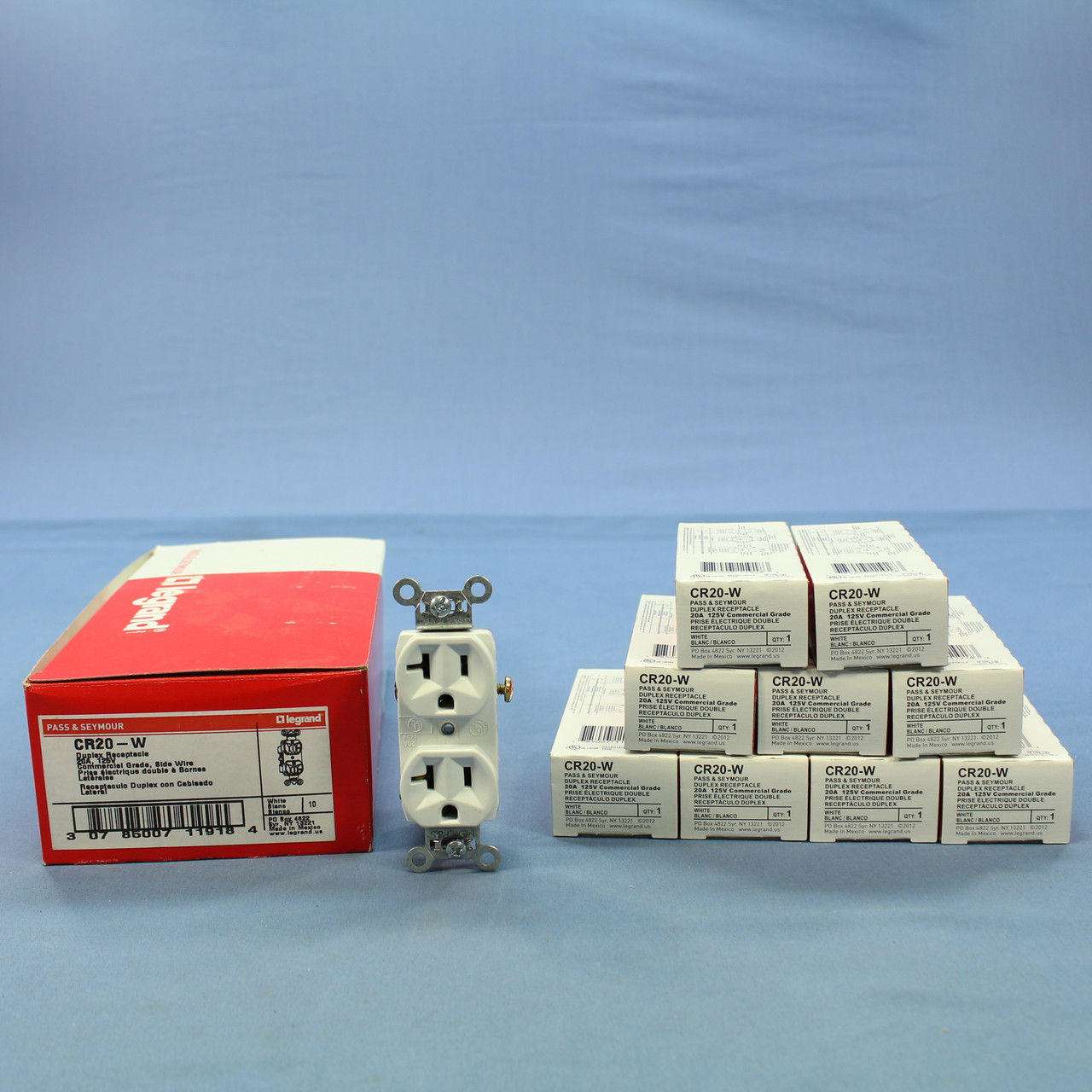 - 10 Pass & Seymour CR20-W White Commercial Grade Straight Blade Receptacle Duplex Outlets NEMA 5-20R 20A 125V