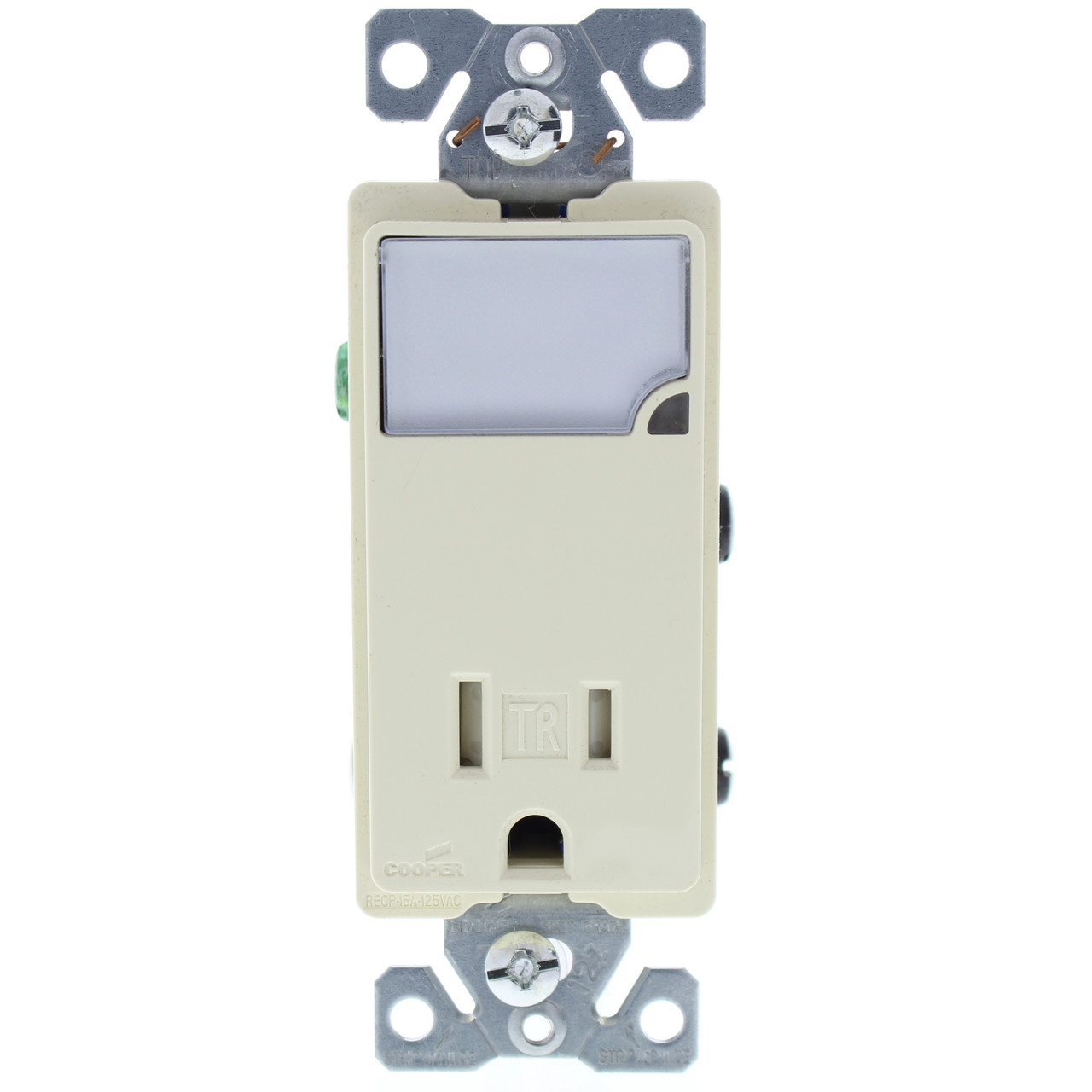 - Cooper Almond Tamper Resistant Dimmable Nightlight Receptacle Combo Single Pole B&S NEMA 5-15R 15A 125V TR7735A-K