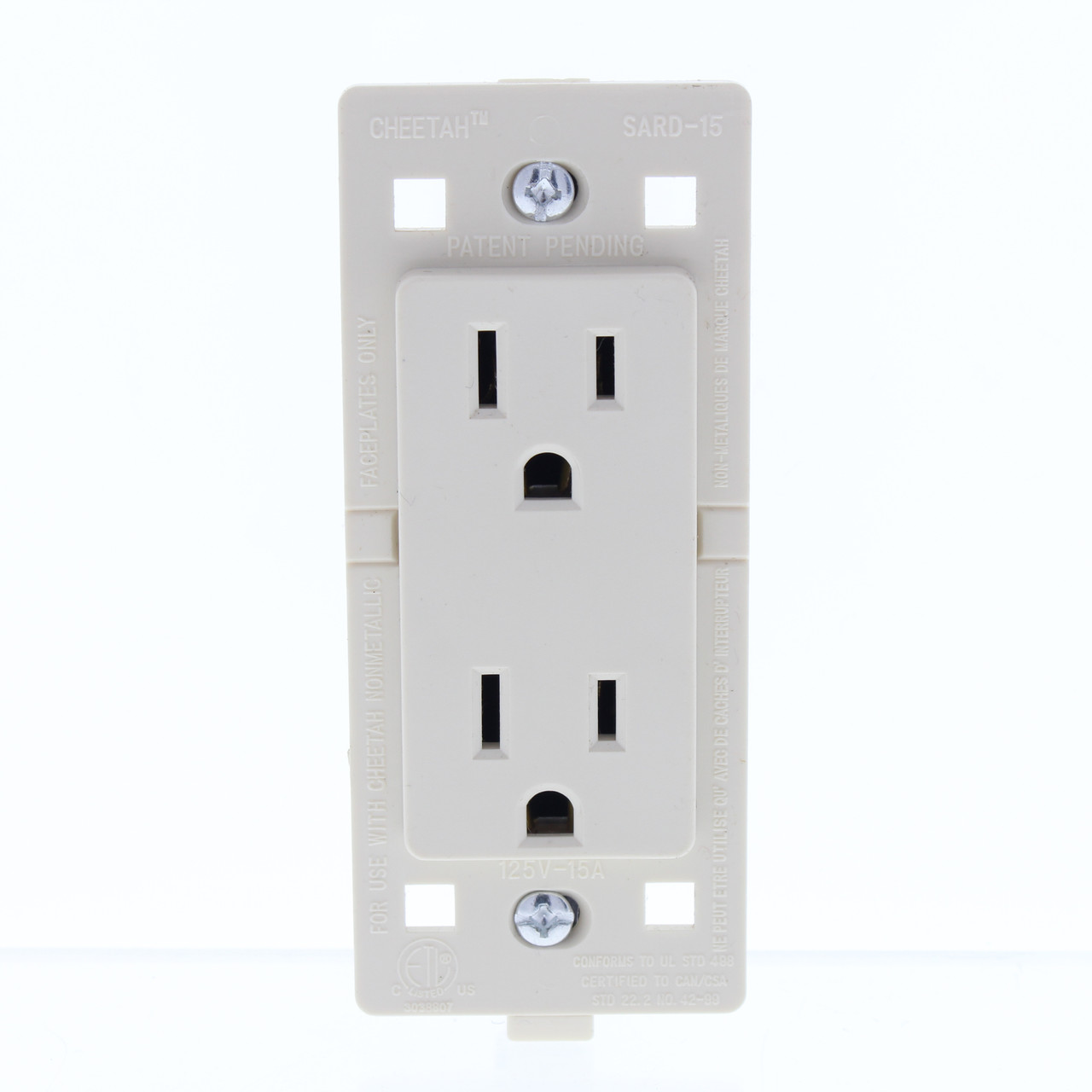 - Cheetah 7020-CT Snap-In White Outlet Receptacle 15A 125V