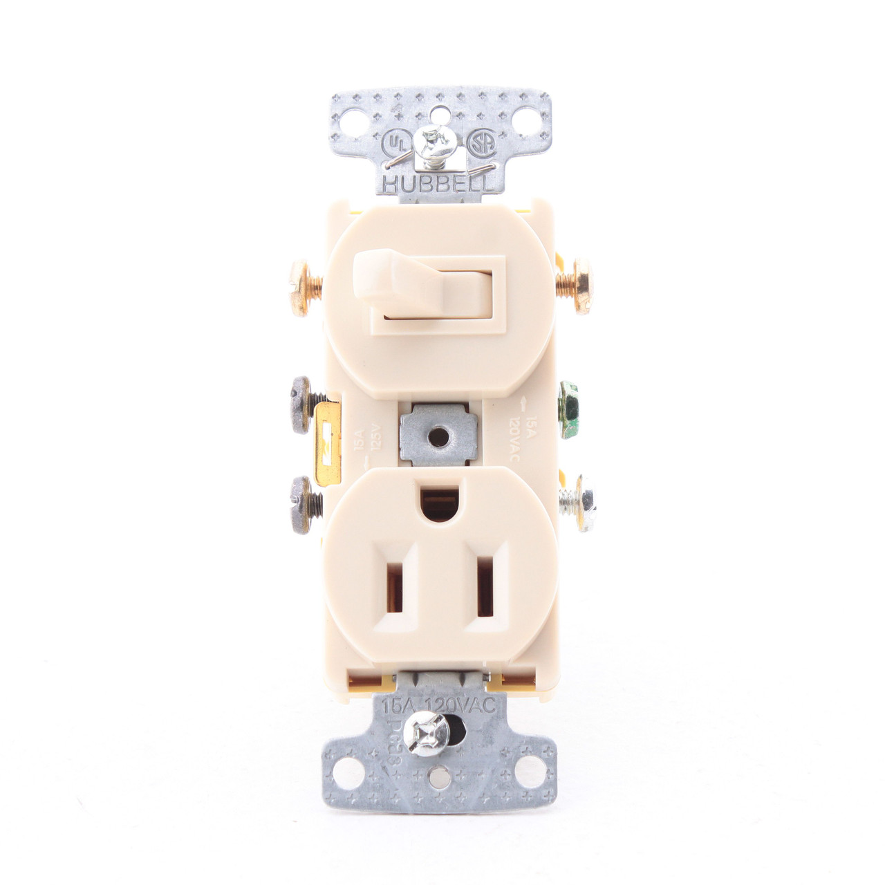 - Hubbell Toggle Switch 3-Way 15A 120V, Receptacle 15A 125V Ivory
