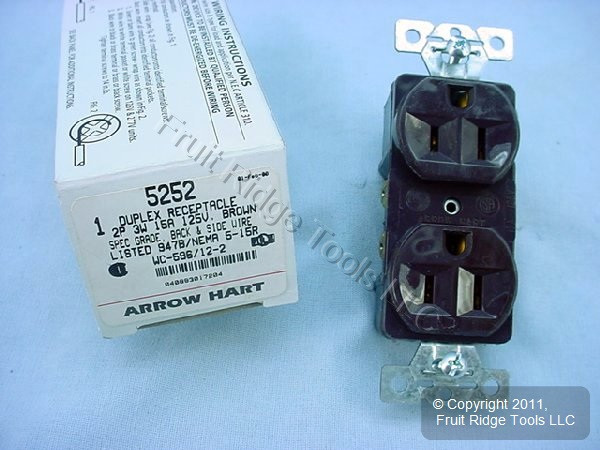 - New Arrow Hart Brown Straight Blade Duplex Receptacle Outlet 5-15R 15A 125V 5252