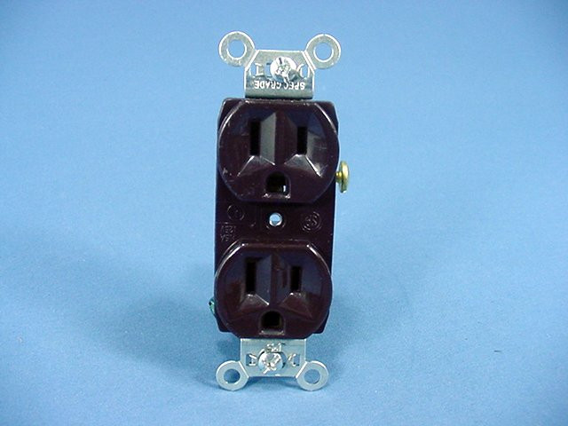 Pass & Seymour CR15 brown duplex receptacle. Designed for the hard use of commercial installations. Commercial Specification Grade, NEMA 5-15R, 2-pole, 3-wire, grounding, rated 15A 125V. Each is individually packaged. Features include:
