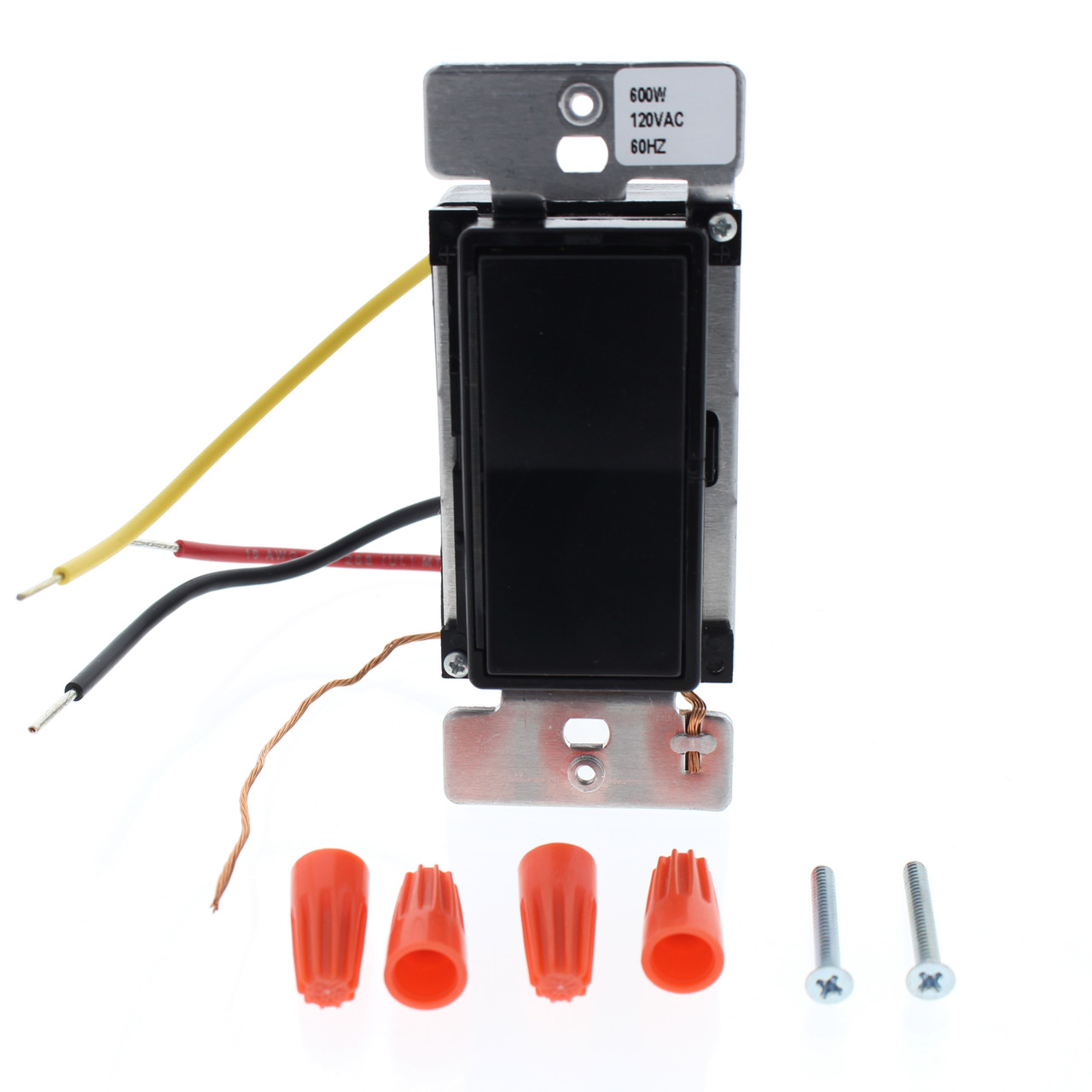 Pass & Seymour D600MBKV black preset rocker dimmer. Operation can be controlled from a single location or from multiple locations. Reliable all-digital circuitry means you'll enjoy years of trouble-free switching. Each is individually packaged; packaging may differ from photos. Features include: