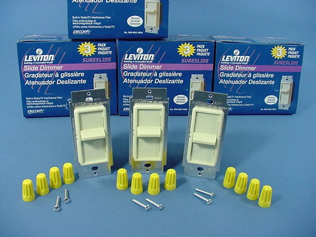 15 Leviton 6621-A almond Decora SureSlide slide dimmers. Boxed with instructions. Features include: