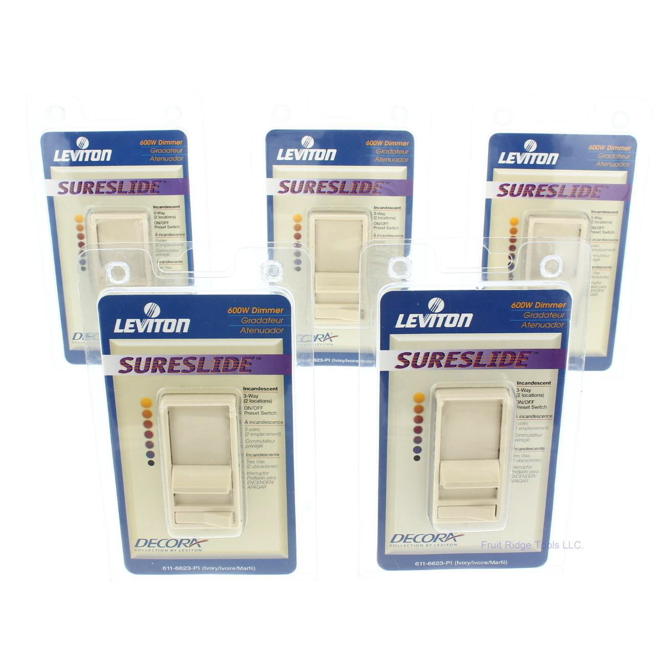 - 5 Leviton Ivory Decora Slide Dimmer Switches Preset 3-Way 6623-PI