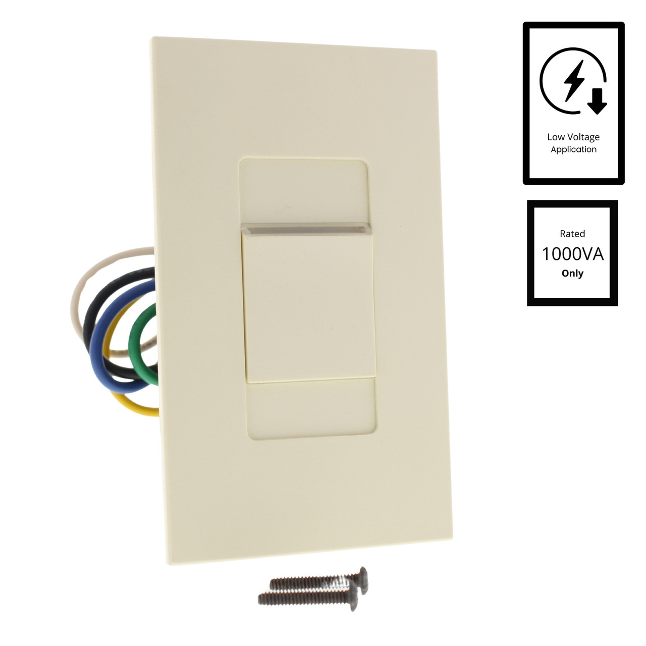 - Rated 1000W for incandescent lighting; rated 1000VA (750W) for magnetic low voltage lighting; not for use with fluorescent or electronic low voltage lighting