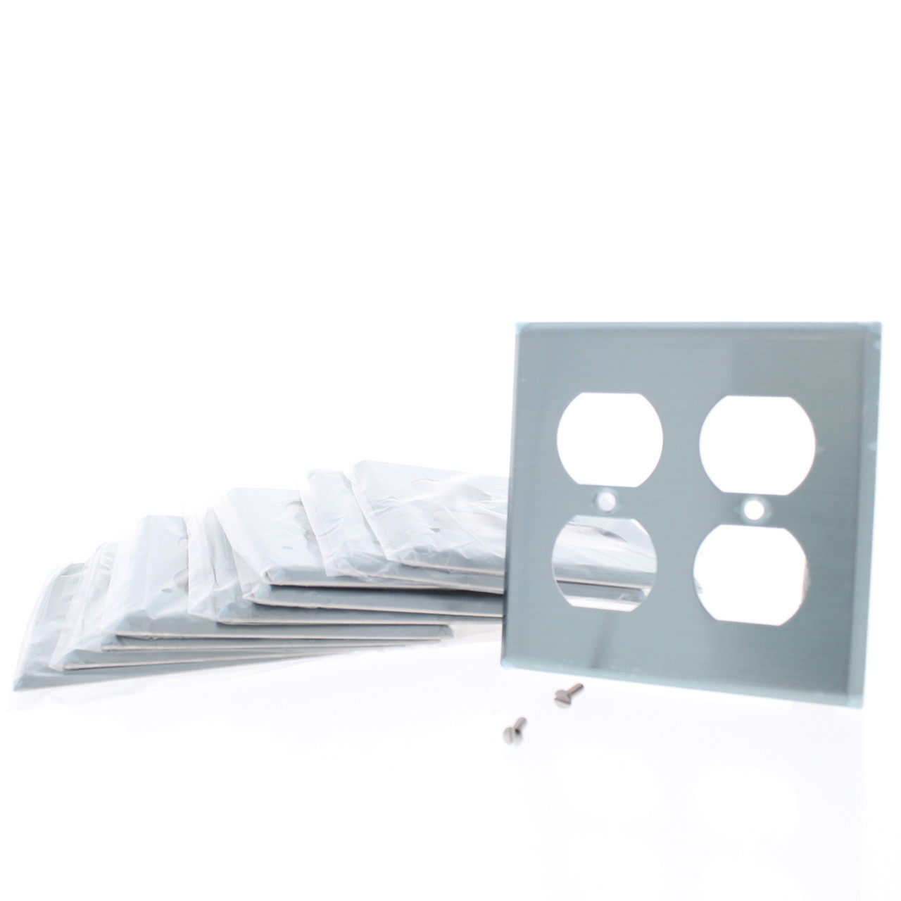 - 10 Eaton Stainless Steel 2-Gang Duplex Receptacle Wallplates Outlet Cover 93102