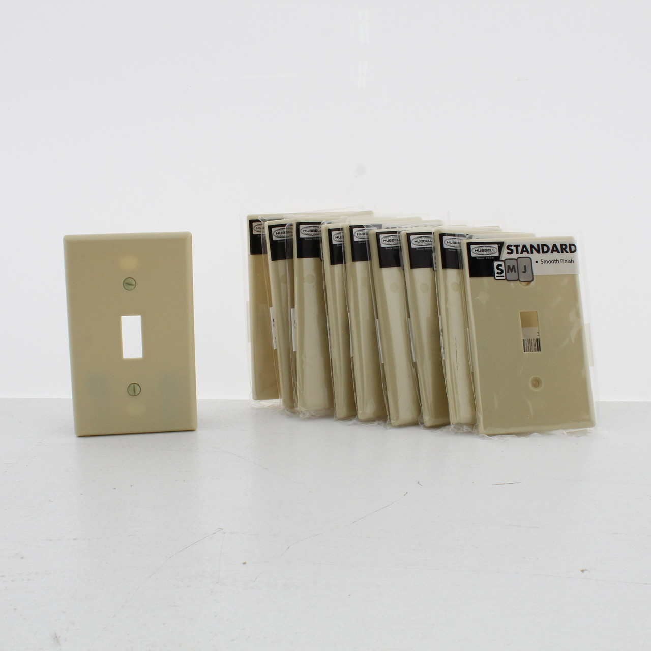 10 Hubbell WP1I ivory single-gang toggle switch wallplates. Residential Grade, standard size (4.5"h x 2.75"w) wallplate with one toggle switch opening. Features include: