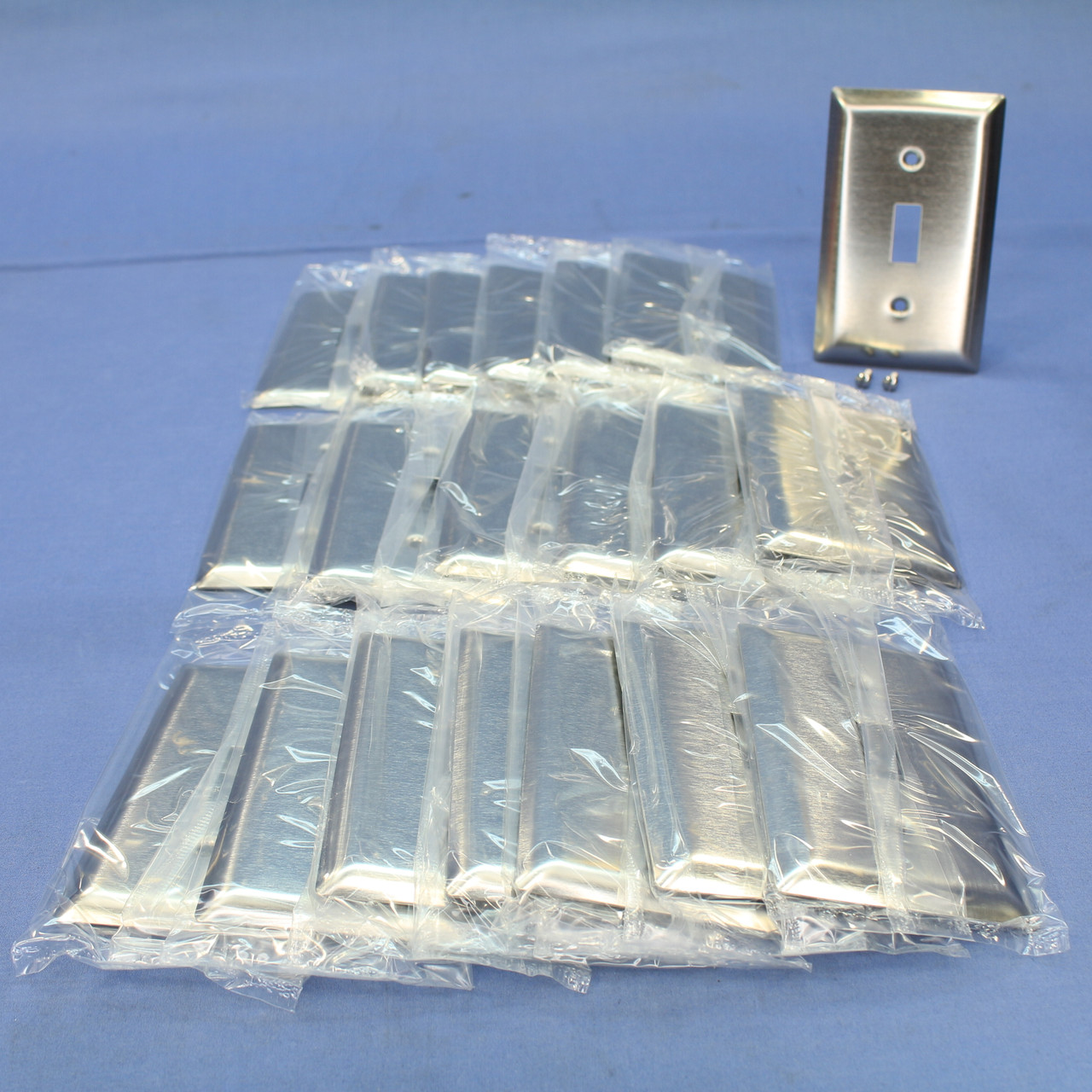 - 20 Pass and Seymour Type 304 NON-MAGNETIC Stainless Steel 1-Gang Toggle Switch Cover Wallplates Smooth Metal SS1