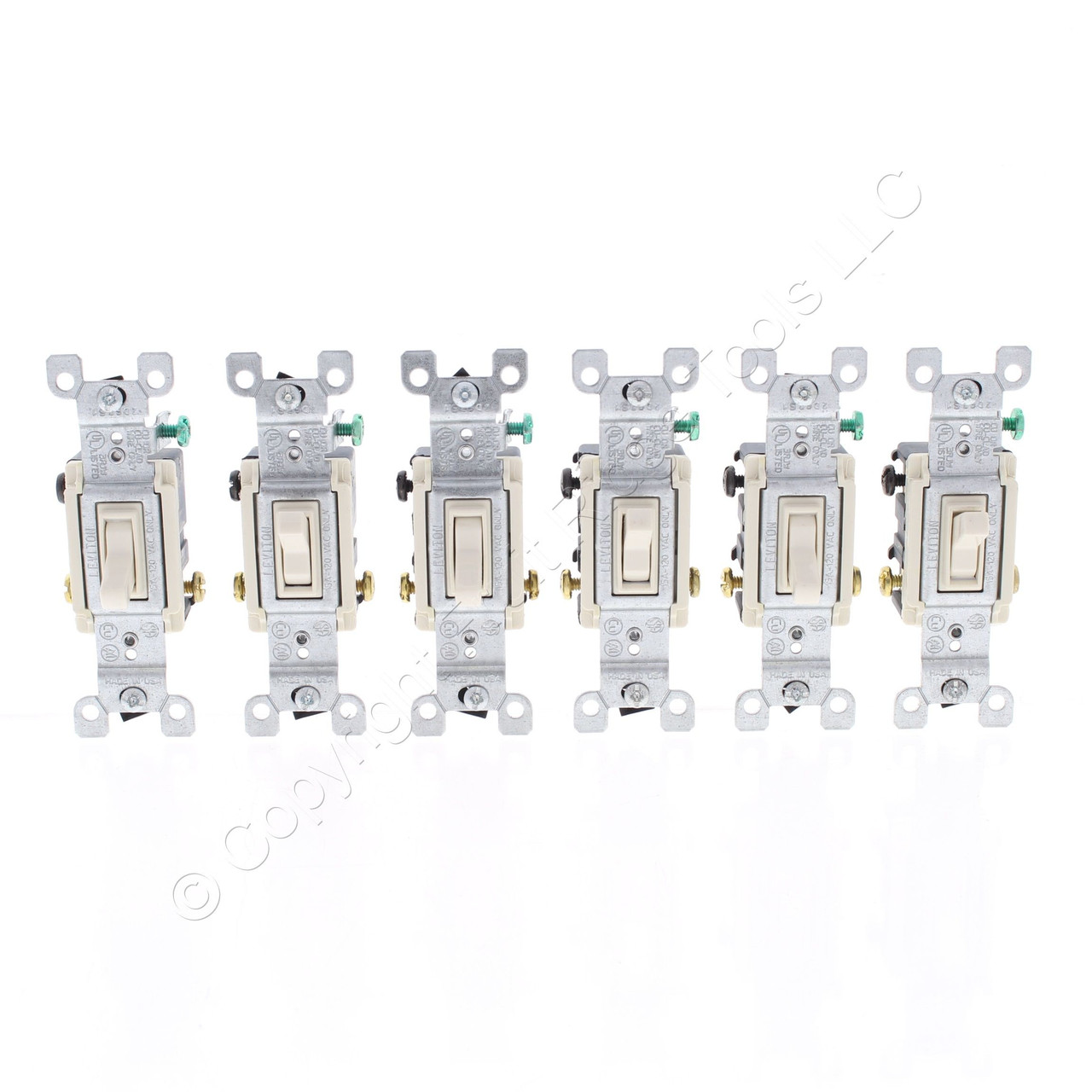 - Leviton 1453-2TM Light Almond 3-Way Toggle Switches 15A 120V 6pcs
