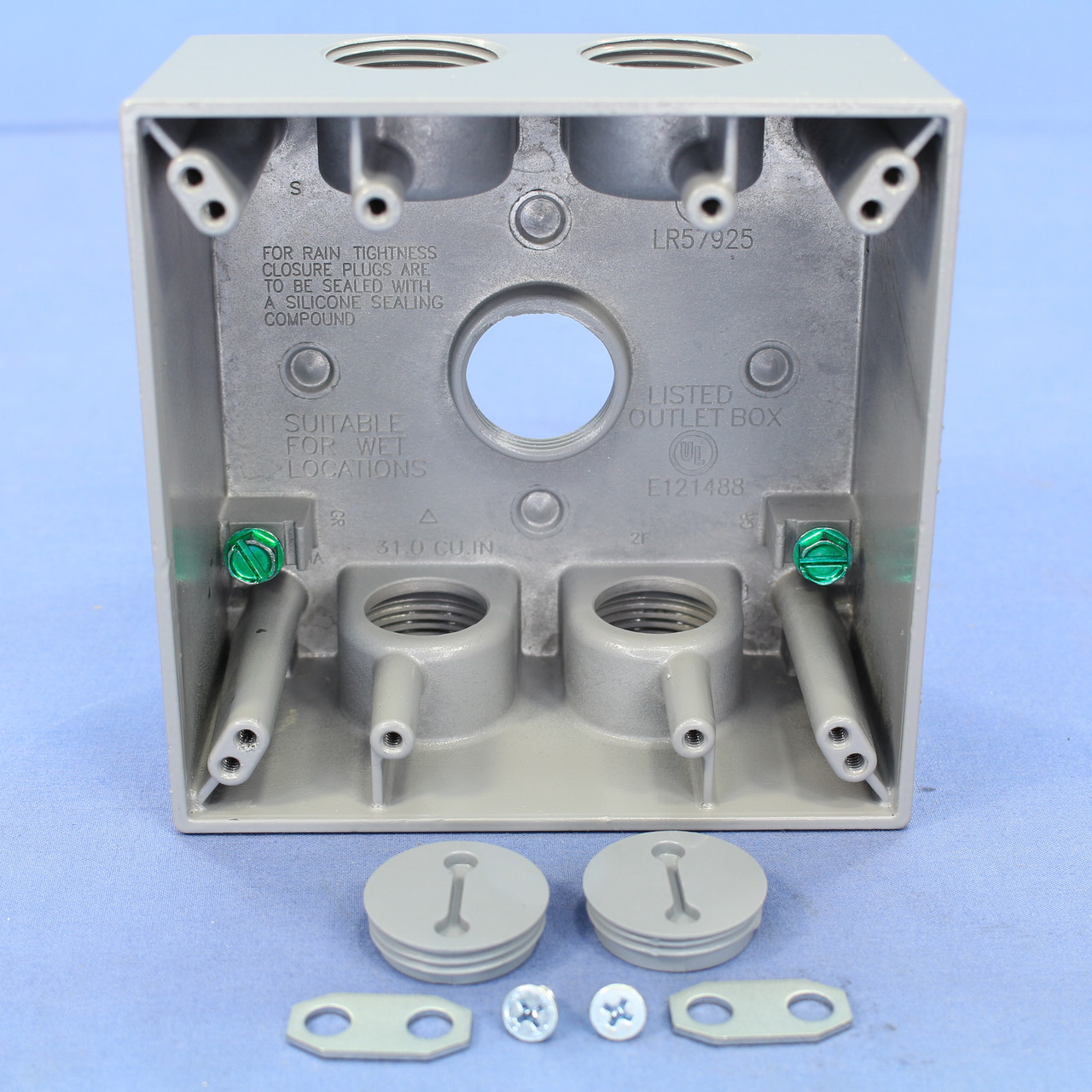 - Pass and Seymour Gray Die-Cast Aluminum Weatherproof 2-Gang Outlet Box 5-Hole 3/4" WPB352