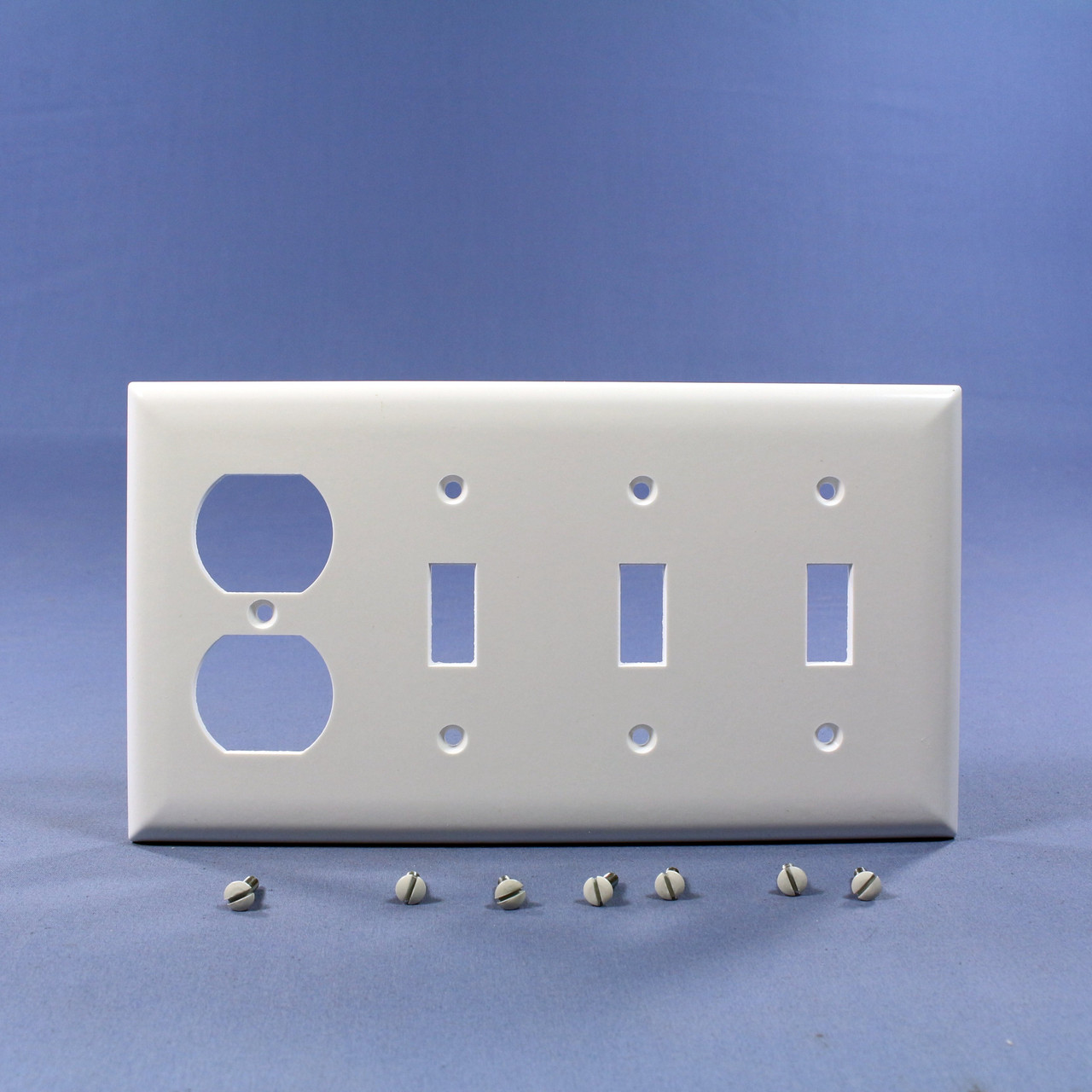 - Pass and Seymour Legrand White 4-Gang Combination Toggle Switch Duplex Receptacle Outlet Plastic Wallplate Cover Standard Size SP38-W