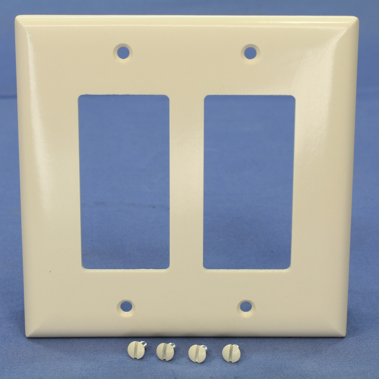 Pass and Seymour SPJ262-LA light almond 2-gang decorator device smooth plastic wallplate. Residential Grade, Junior-Jumbo, measuring 4.87"h x 4.93"w, 3/8" higher and wider than standard wallplates for use with larger size wall boxes and to hide irregularities on the surrounding wall. Each is individually packaged; packaging may differ from photos. Features include: